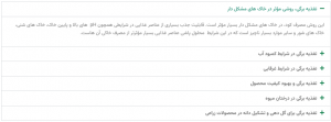 - محلول پاشی در زمان تشنگی و استرس گیاه انجام نشود. محلول پاشی باید چند روز پس از آبیاری صورت پذیرد یا پس از محلول پاشی، آبیاری مزرعه و باغ انجام گیرد.