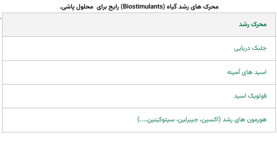 - محلول پاشی در هنگام اوایل صبح یا عصر و در محدوده دمایی 25-27 درجه سانتی گراد که روزنه ها در آن زمان بیشترین فعالیت را دارند انجام شود.