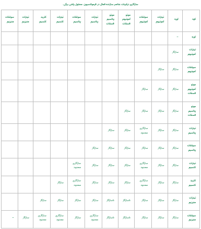 در جدول زیر به شرایط سازگاری و ناسازگاری کود های رایج در تغذیه برگی اشاره شده است.