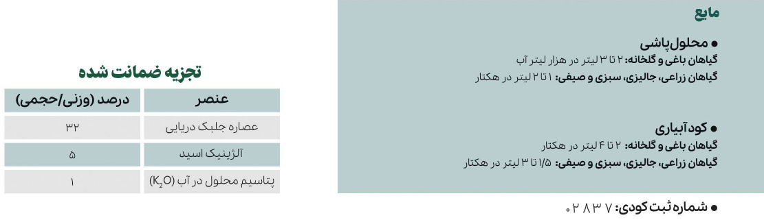 آلگیزایز یک کود مایع حاصل از عصاره جلبک دریایی (Ecklonia maxima) است که از مواد غذایی گیاهپسند برخوردار بوده و حاوی بیش از هفتاد نوع ماده معدنی و ویتامین، مورد نیاز گیاهان میباشد.طی فرآیند تولید، به کمک فناوری نوین استخراج بر پایه Cellburst به صورت پودری نیکوتنه و پایدار تولید میشود که قوام زیستی اسیدهای آمینه گیاهی را حفظ دارد.کود آلگیزایز باعث افزایش رشد و توسعه ریشه، افزایش جذب عناصر غذایی، بهبود رنگ، طعم و بوی محصولات، افزایش عملکرد و کیفیت گیاه میگردد.این عناصر شامل نیتروژن، فسفر و پتاسیم هستند که نقش مهمی در رشد گیاه ایفا میکنند. استفاده از این محصول باعث بهبود خاک، افزایش مقاومت گیاهان در برابر تنشهای محیطی و افزایش فتوسنتز میشود.علاوه بر این، آلگیزایز به عنوان یک محرک زیستی عمل میکند که باعث رشد ریشههای جانبی گیاهان میگردد و محیطی سالمتر و سازگارتر برای رشد گیاهان و خاک حاصلخیزتر فراهم میآورد.