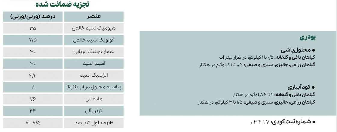 کربوزایز اچ اس ای 100 یک کود آلی محرک رشد به فرم پودری بر پایه هیومیکاسید تهیه شده است.این کود با عصاره جلبک دریایی و اسیدهای آمینه غنی شده و به علت محتوای بالای اسید هیومیک، برای رشد ریشه و جذب مواد غذایی عمل میکند.عصاره جلبک دریایی (Ascophyllum nodosum) باعث تحریک جوانهزنی و فعالیتهای متابولیکی گیاه میشود.همچنین اسید آمینه موجود در این ترکیب، رشد رویشی را تقویت کرده و به بهبود کیفیت محصول کمک میکند.این ترکیب باعث افزایش پروتئین در داخل گیاه و فراهم نمودن انرژی مورد نیاز گیاه میشود و در شرایط تنشهای متابولیکی و محیطی، تعادل انرژی گیاه را حفظ میکند.استفاده از این کود در سایر ترکیبات زراعی به منظور بهبود مقاومت گیاه به تنشها و بیماریهای زنده و غیرزنده توصیه میشود.