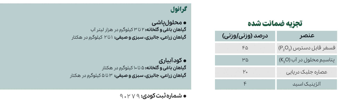 زایفوس آلگا یک کود بر پایه فسفر آلی به همراه پتاسیم و عصاره جلبک دریایی میباشد. این کود با پیشرفتهترین تکنولوژی روز دنیا ساخته شده و یک ترکیب بینظیر برای تأمین همزمان فسفر و پتاسیم در کل دوره رشد گیاه میباشد. زایفوس آلگا به دلیل حضور همزمان فسفر و پتاسیم و بهرهبرداری از 20 درصد عصاره جلبک دریایی در رشد ریشه، برگآوری، گلدهی، تشکیل و رنگگیری میوه و تحمل گیاه در برابر تنشهای مختلف، زنده و غیر زنده تأثیر بسیار مثبتی دارد.حلالیت این کود بسیار بالا بوده و در تمام سیستمهای کشت قابلیت کاربرد دارد.